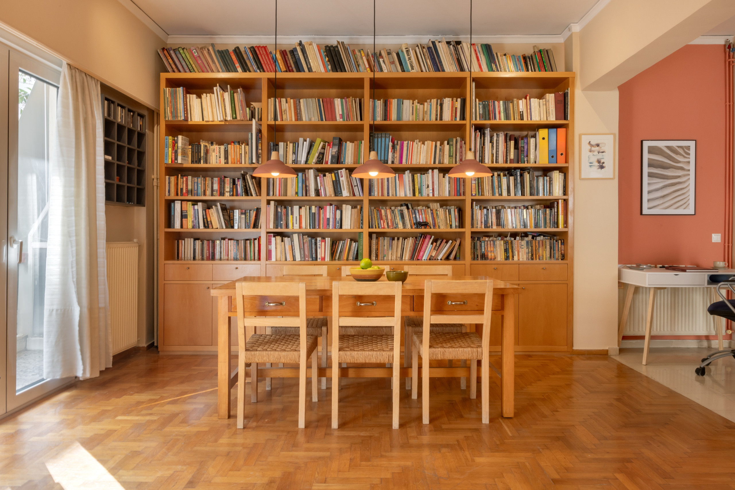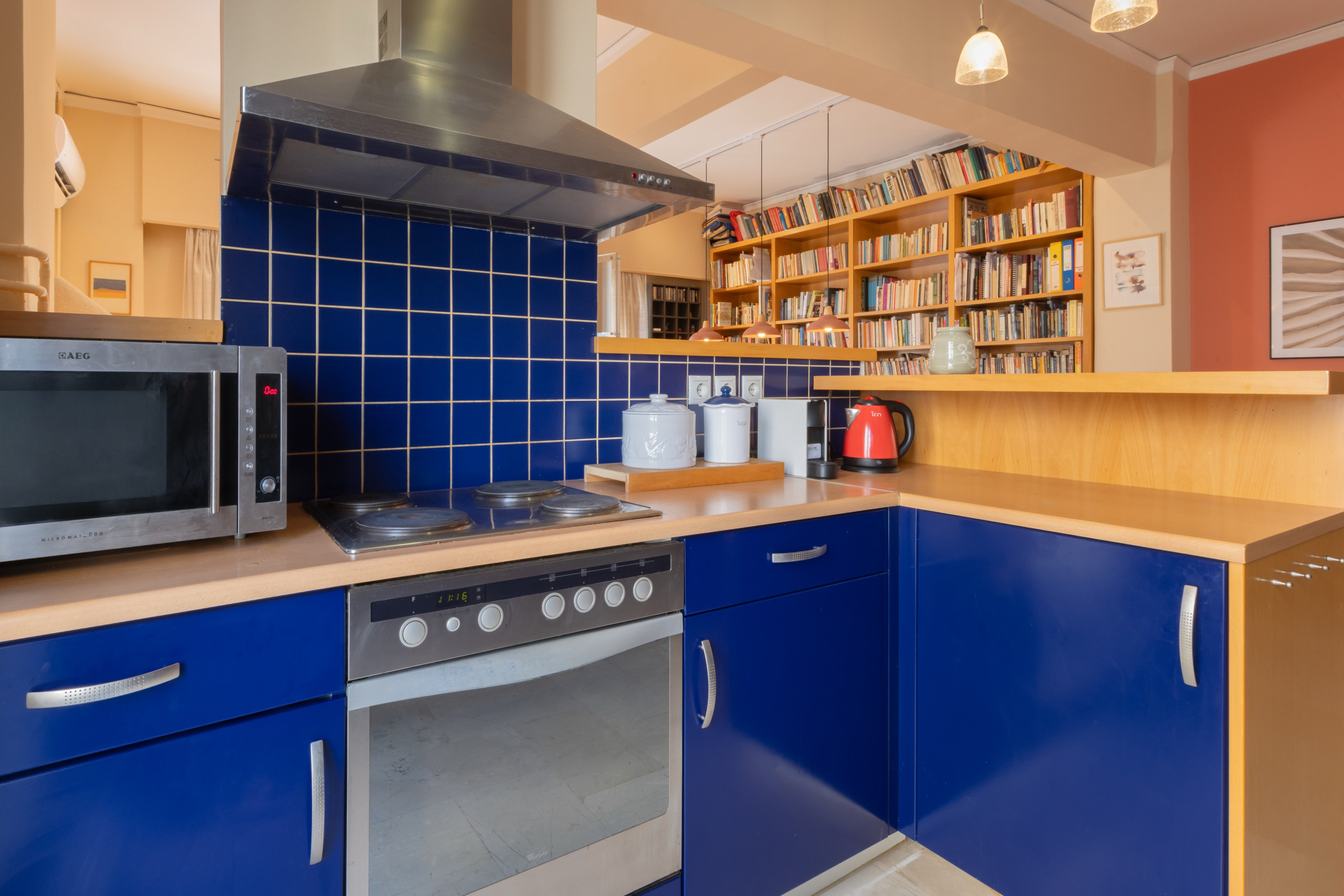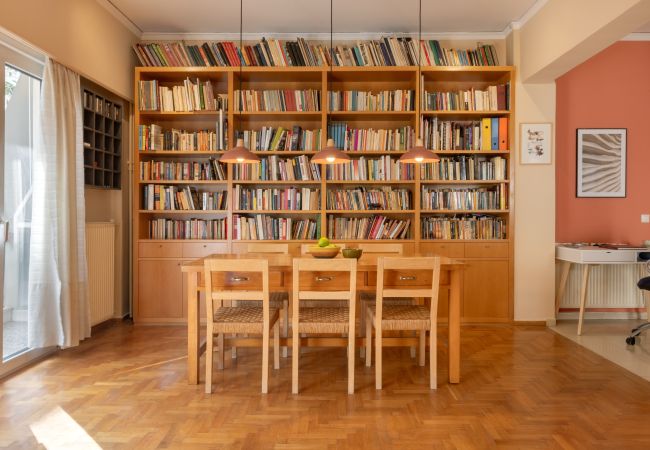 The apartment includes a fully equipped kitchen, perfect for home-cooked meals. A balcony provides a pleasant view of the surrounding neighbourhood, ideal for relaxing outdoors. Guests also have access to an exceptionally well-stocked library with a strong selection in science fiction, philosophy, history, economics, and finance, with books primarily in Greek, English, and French, alongside occasional titles in Spanish and other languages.