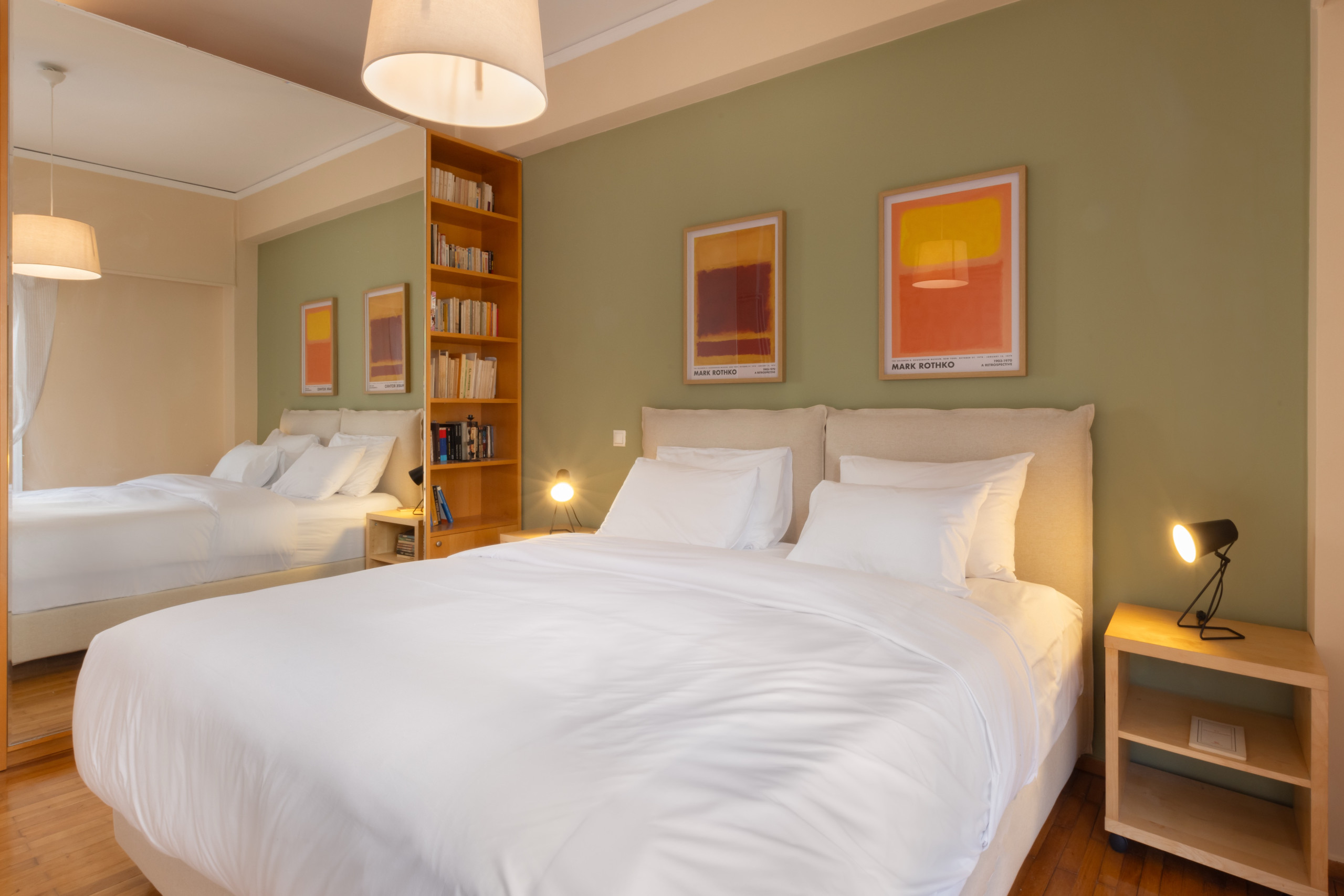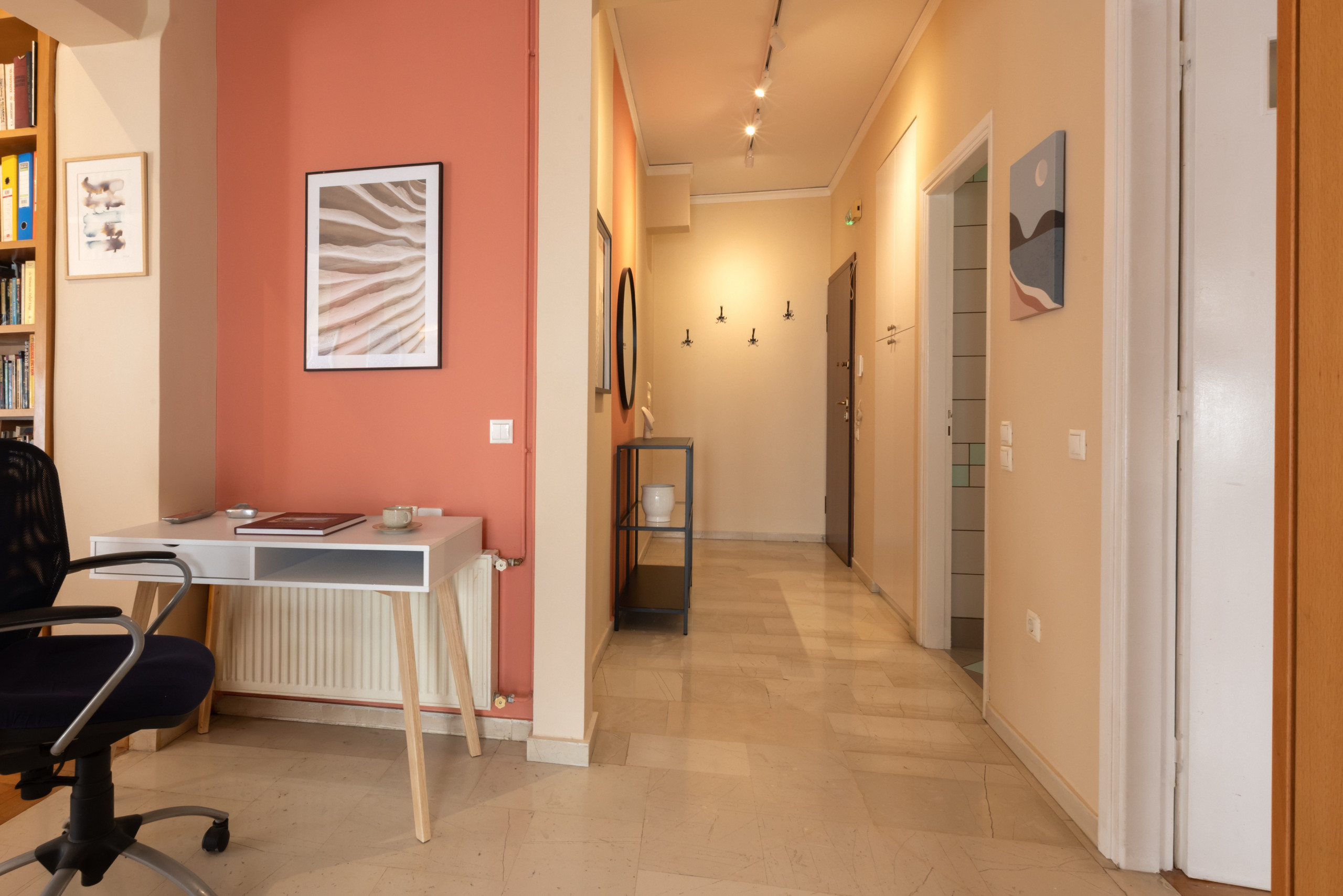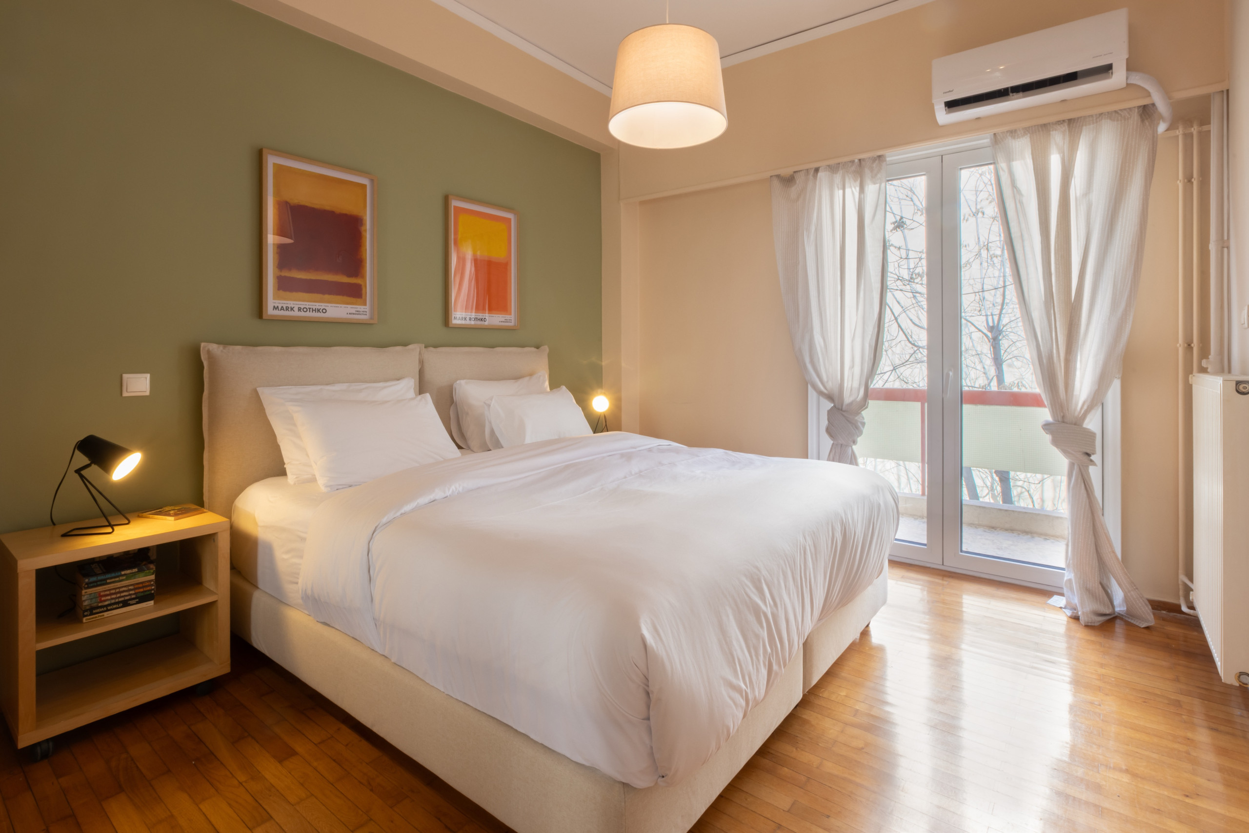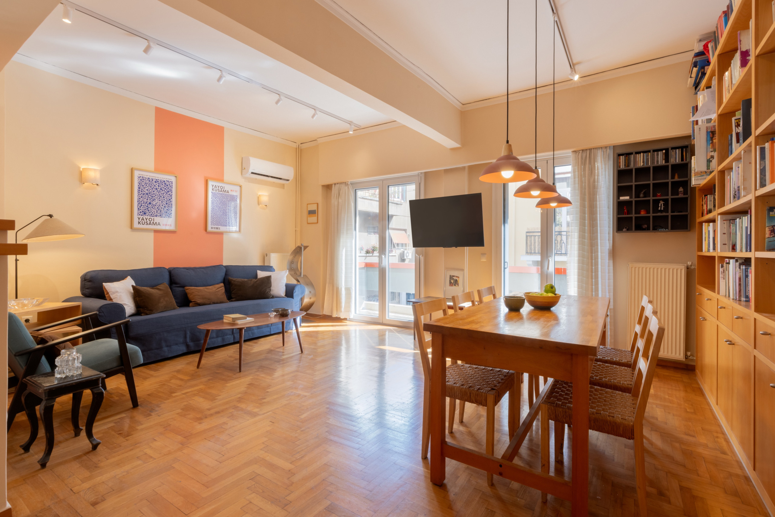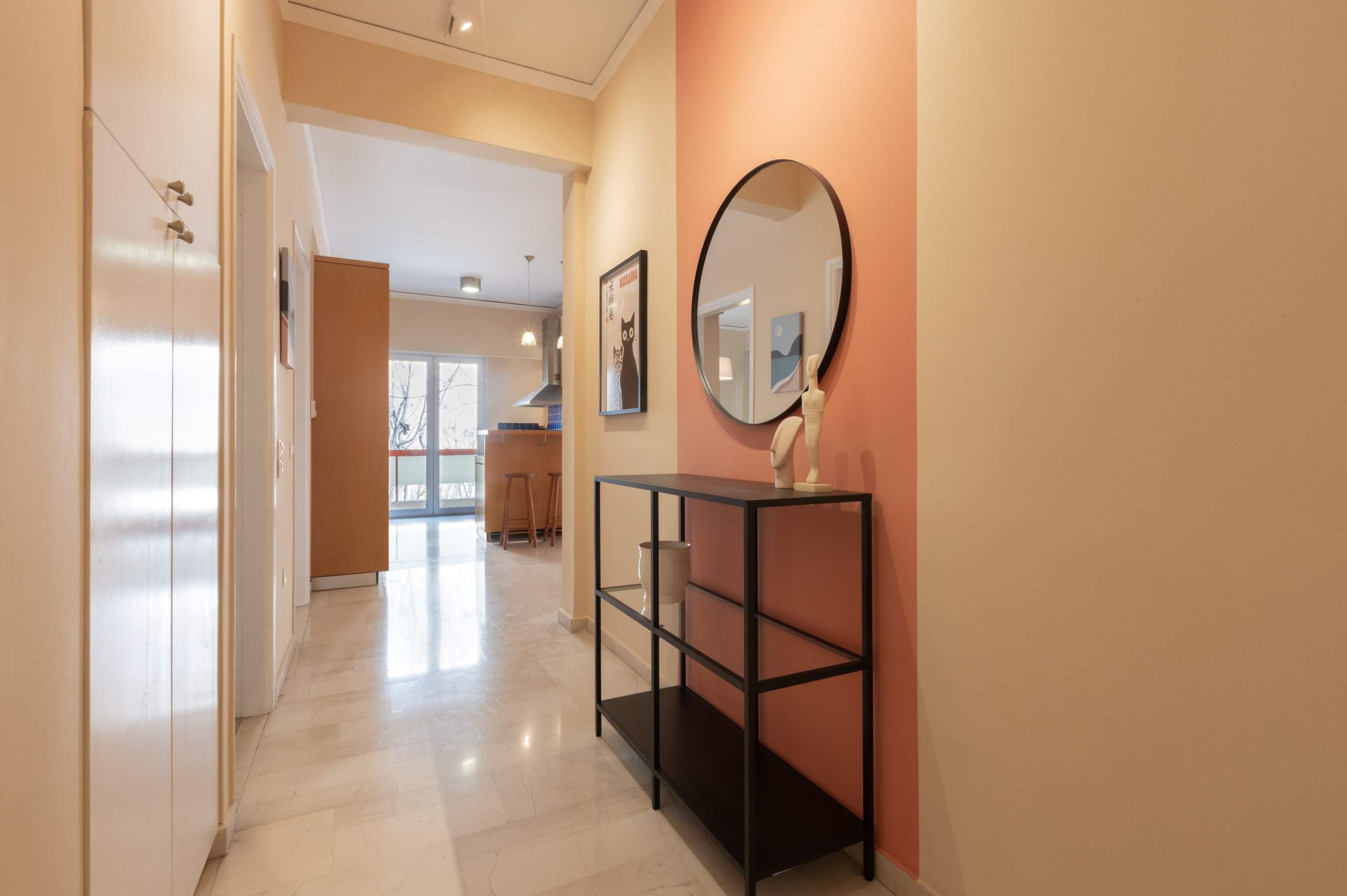 This stylish apartment is located in the vibrant Kypseli neighbourhood of Athens, just a short walk from Dimotiki Agora and surrounded by cafés, shops, and local markets, offering both convenience and an authentic urban experience. A traditional farmers’ market takes place every Wednesday at the street corner, bringing fresh produce and local flavour directly to the neighbourhood.