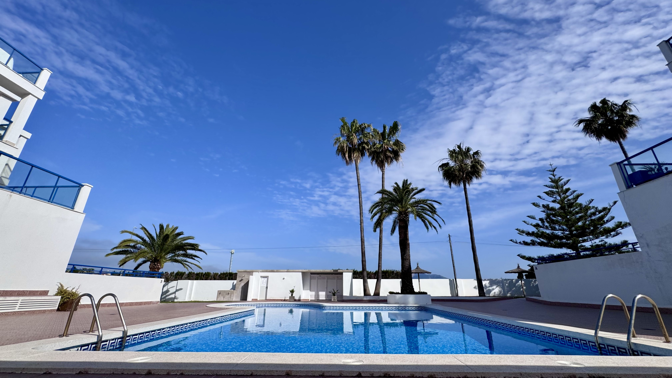 The accommodation is equipped with the following items: lift, 7 m² terrace, washing machine, iron, internet (Wi-Fi), air-conditioned, communal swimming pool, covered parking the same building, 1 TV.
