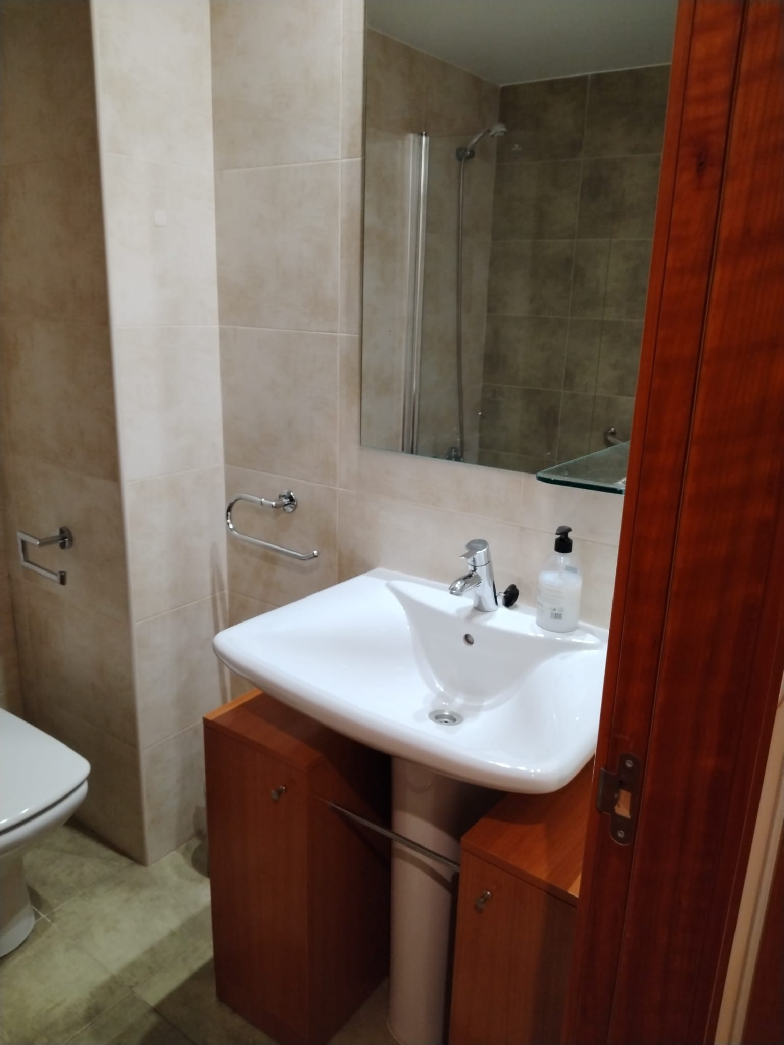 The apartment has two well-distributed bedrooms: one with a double bed and another with two single beds, ensuring comfortable rest for all guests. The brightness and practical design make the space very pleasant and functional.