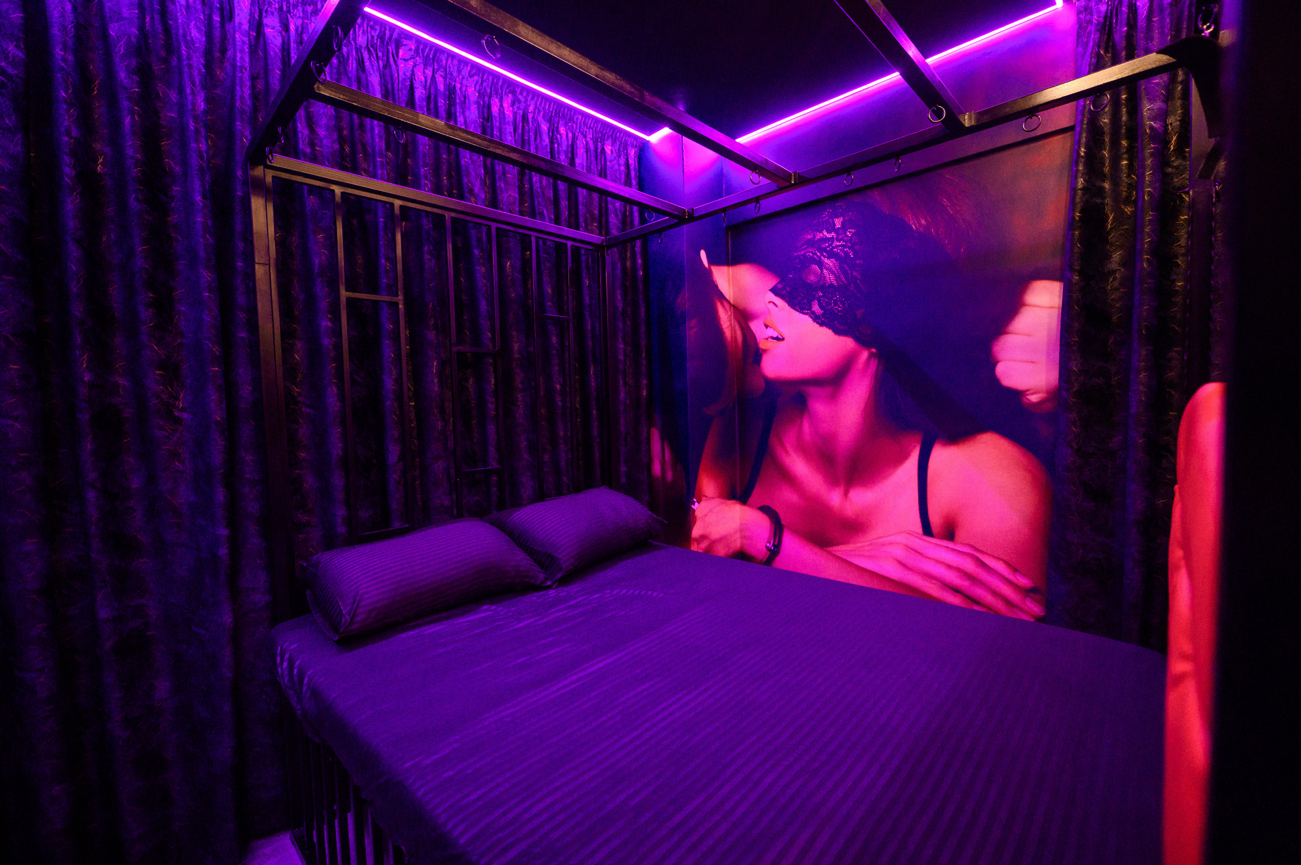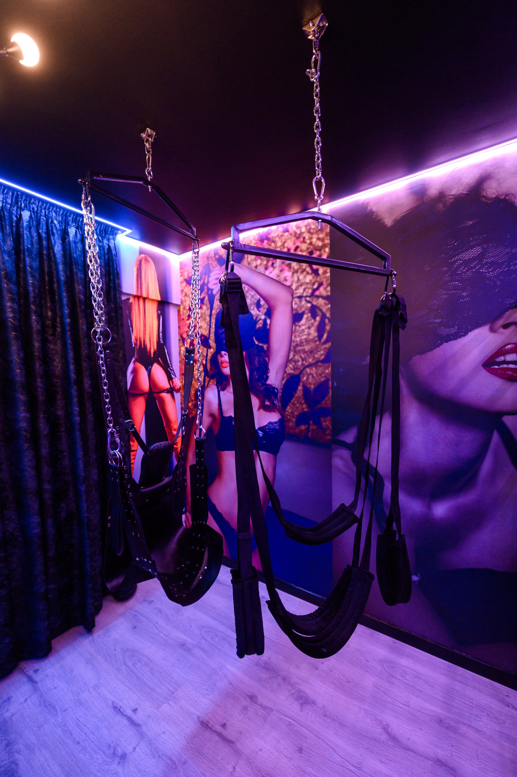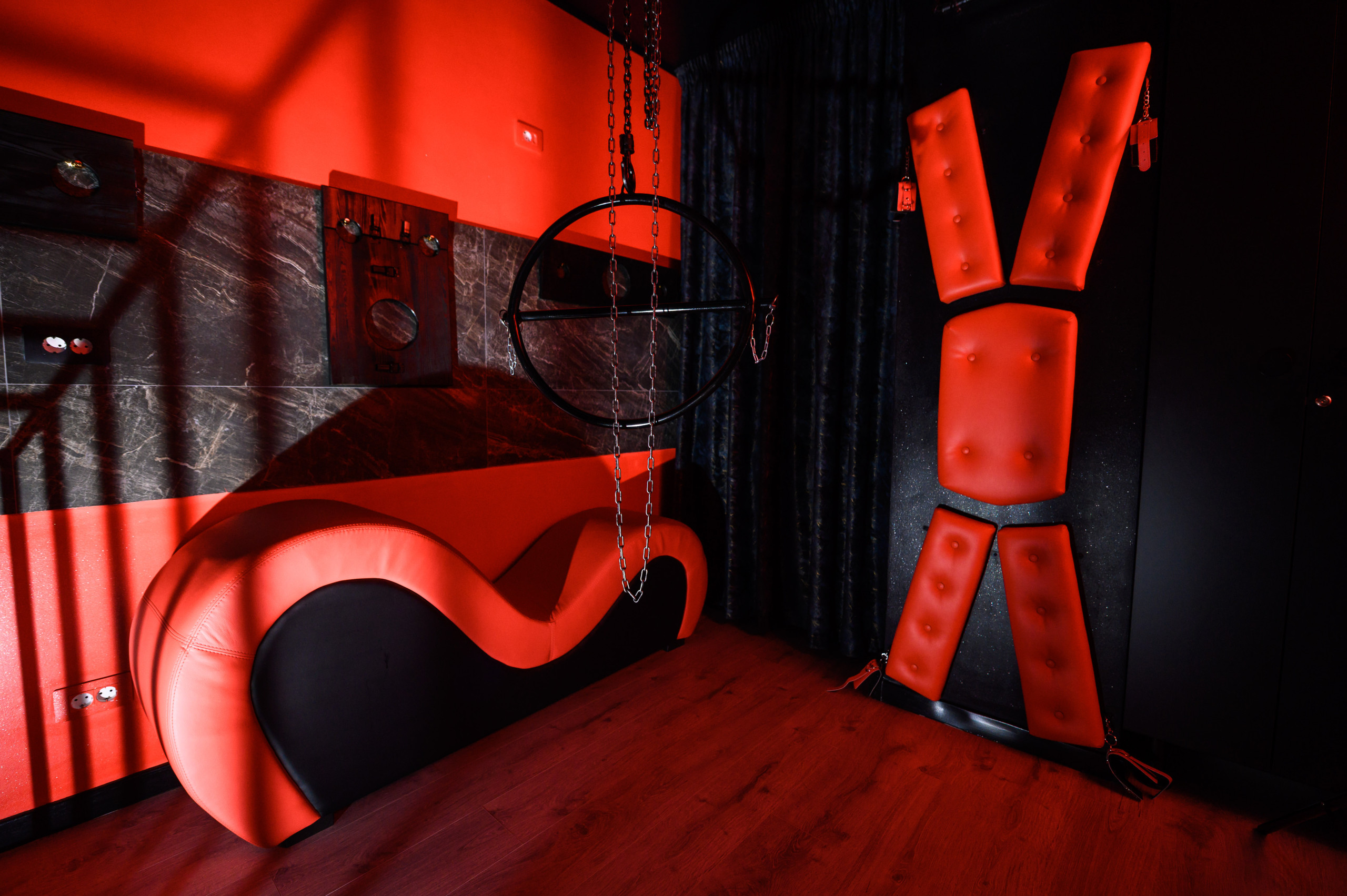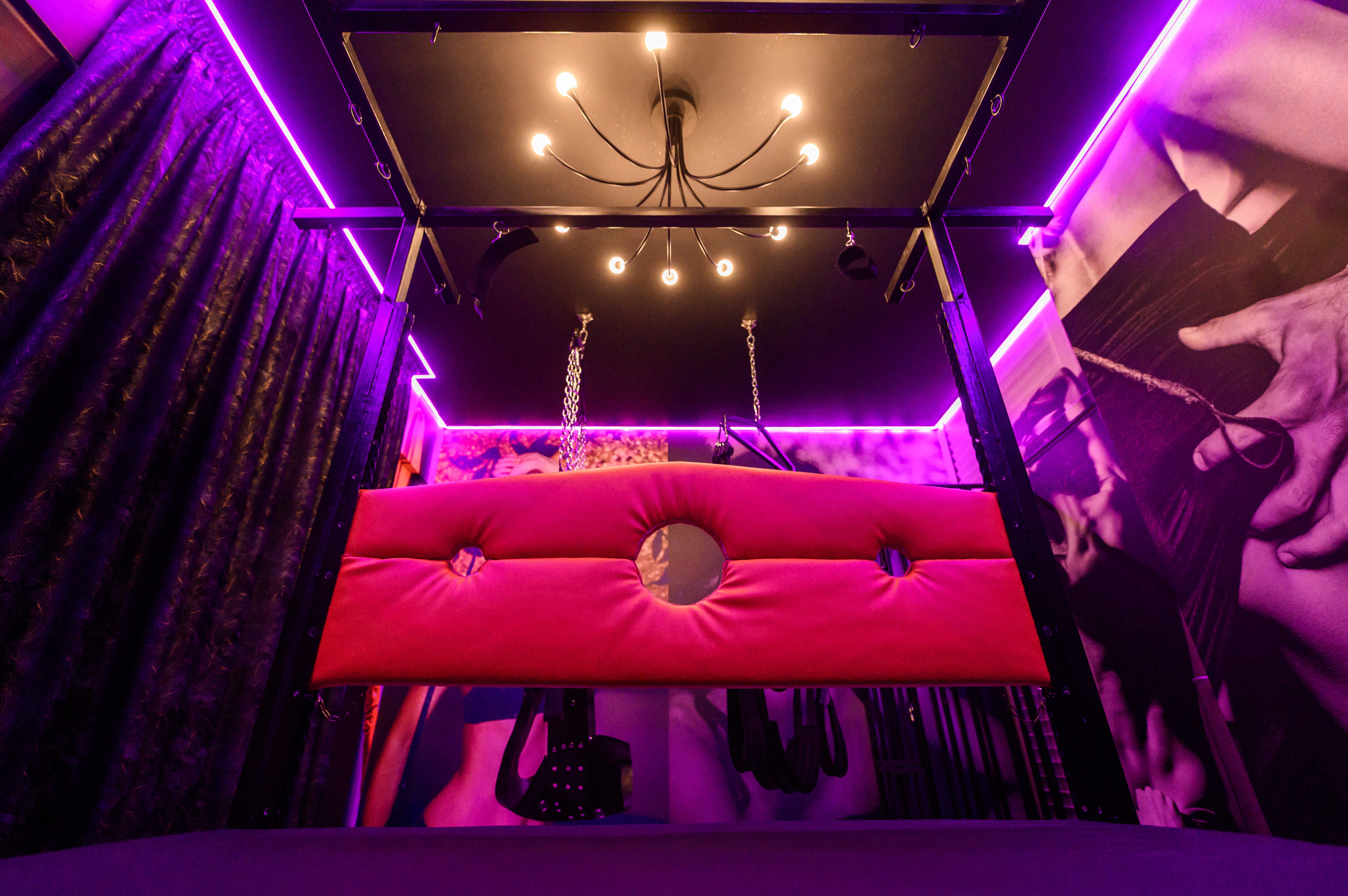 Discover a private, fully equipped BDSM-themed apartment designed for adults seeking a unique and discreet experience. Located in a quiet residential area, the space offers complete privacy, soundproofing, blackout curtains, a private entrance and private parking on-site.