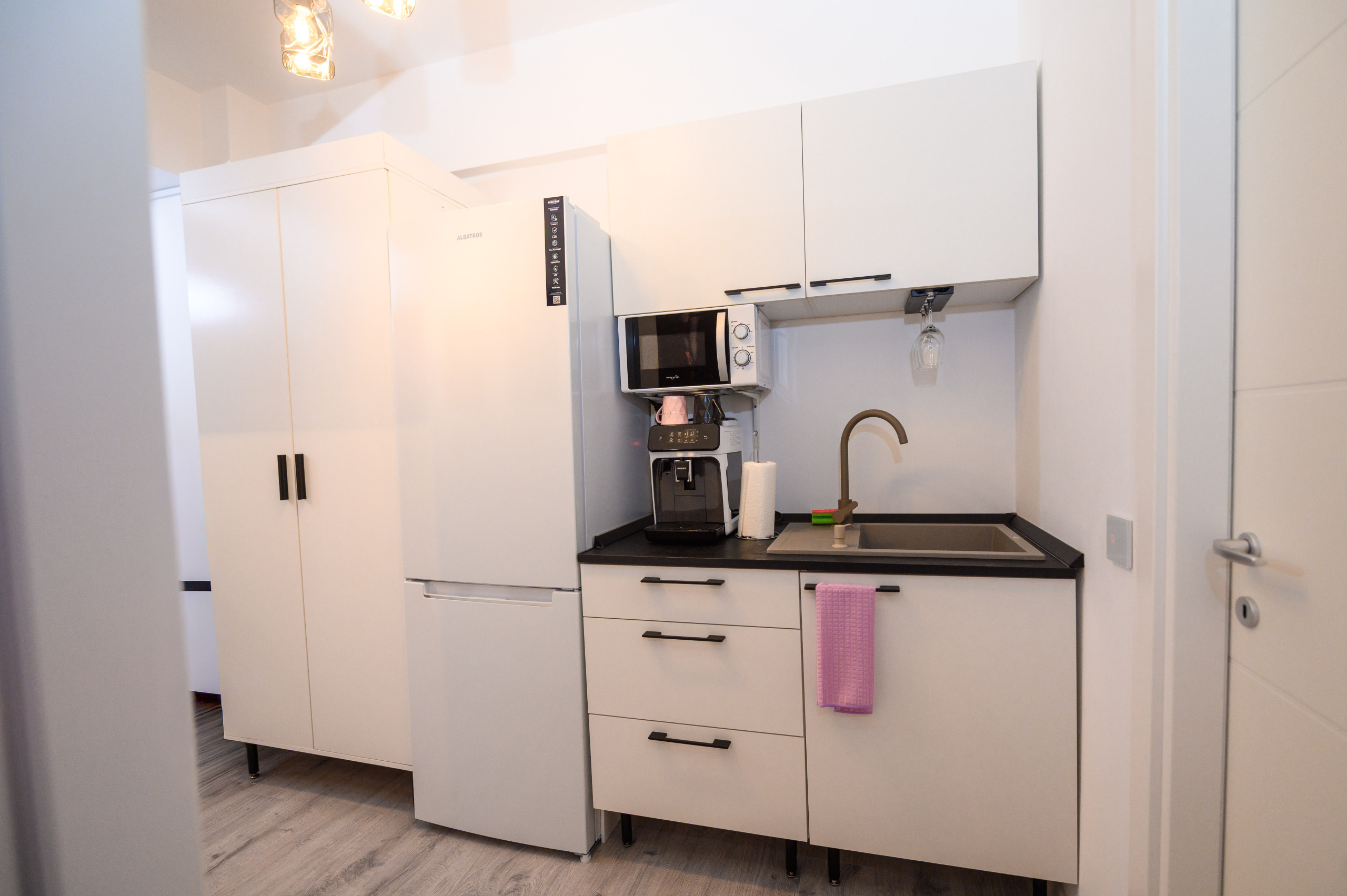 The apartment includes a dedicated BDSM area with professional equipment, a soft romantic room for a more intimate atmosphere, a relaxing hydromassage bathtub, and a stylish poledance stage with a professional pole. High-standard cleaning and discreet access ensure maximum comfort and confidentiality.