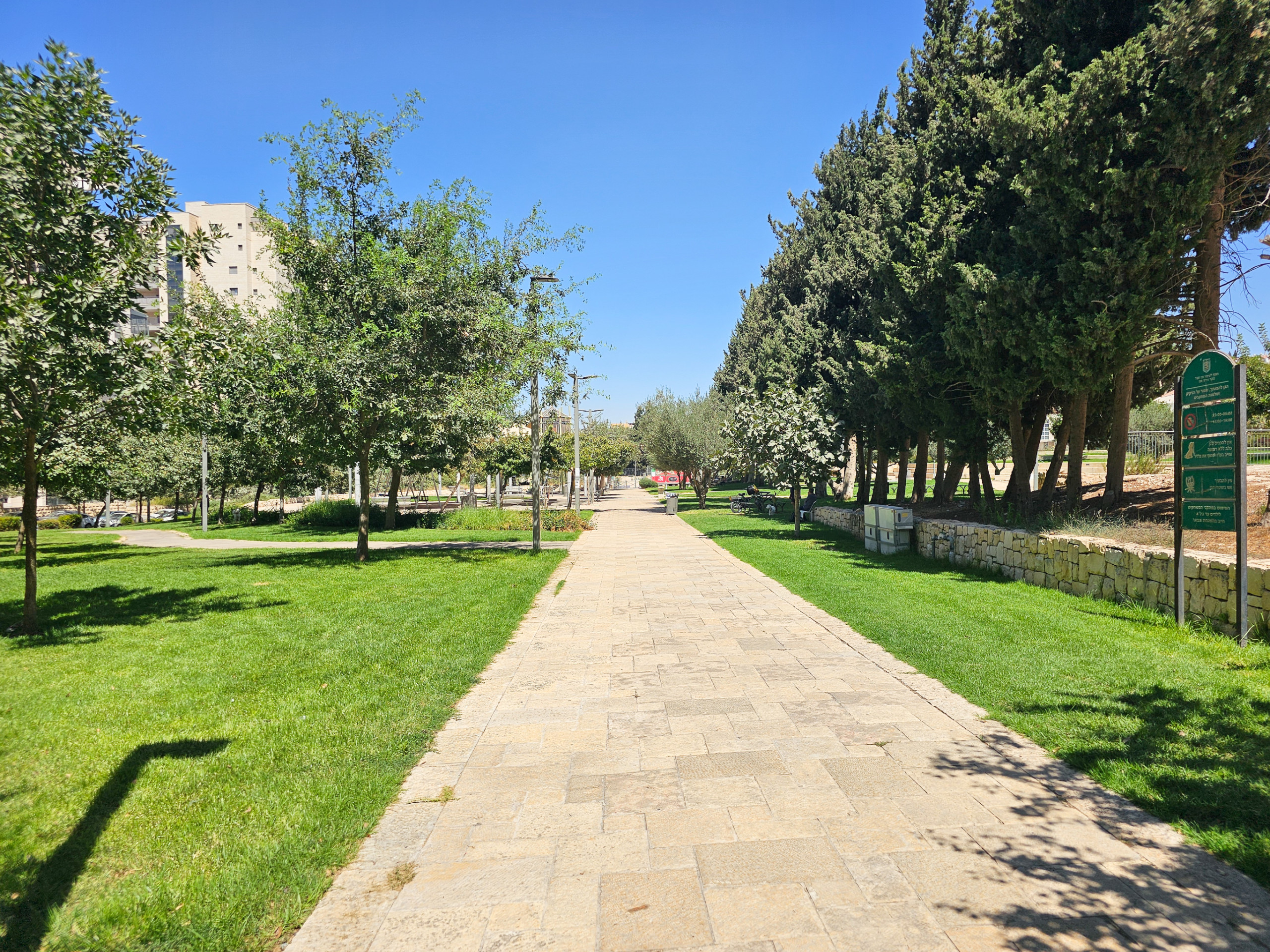 This is a recently built neighborhood in the south of Jerusalem, very quiet and safe. For families there is a park and a large shaded playground downstairs. Talpiyot neighborhood is just a few minutes away by car and offers a large range of supermarkets and restaurants. The city center is not far either (see below)
