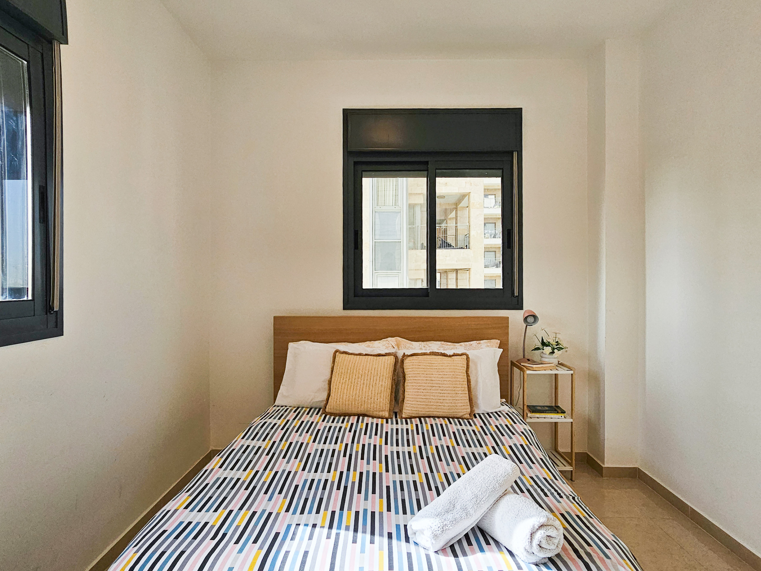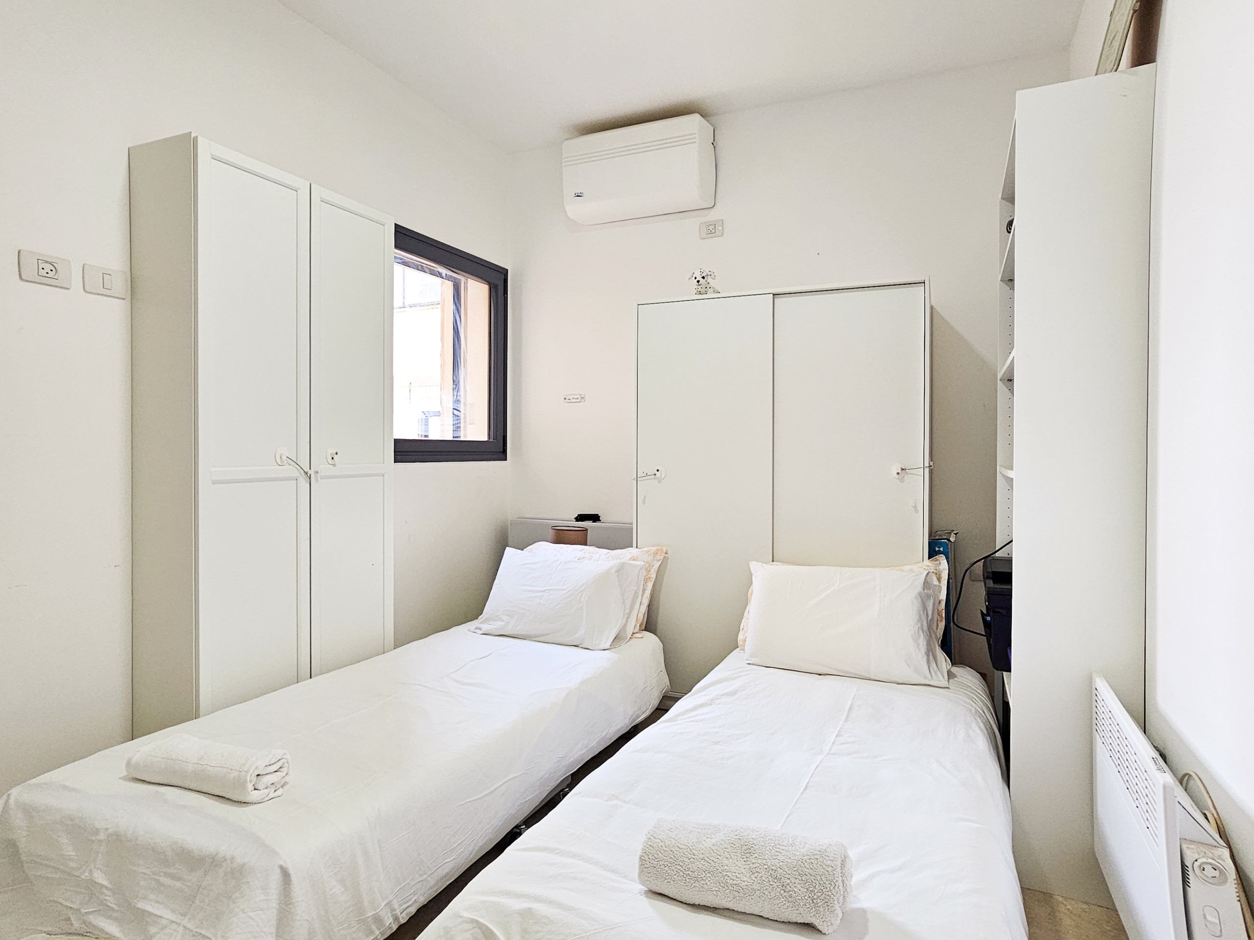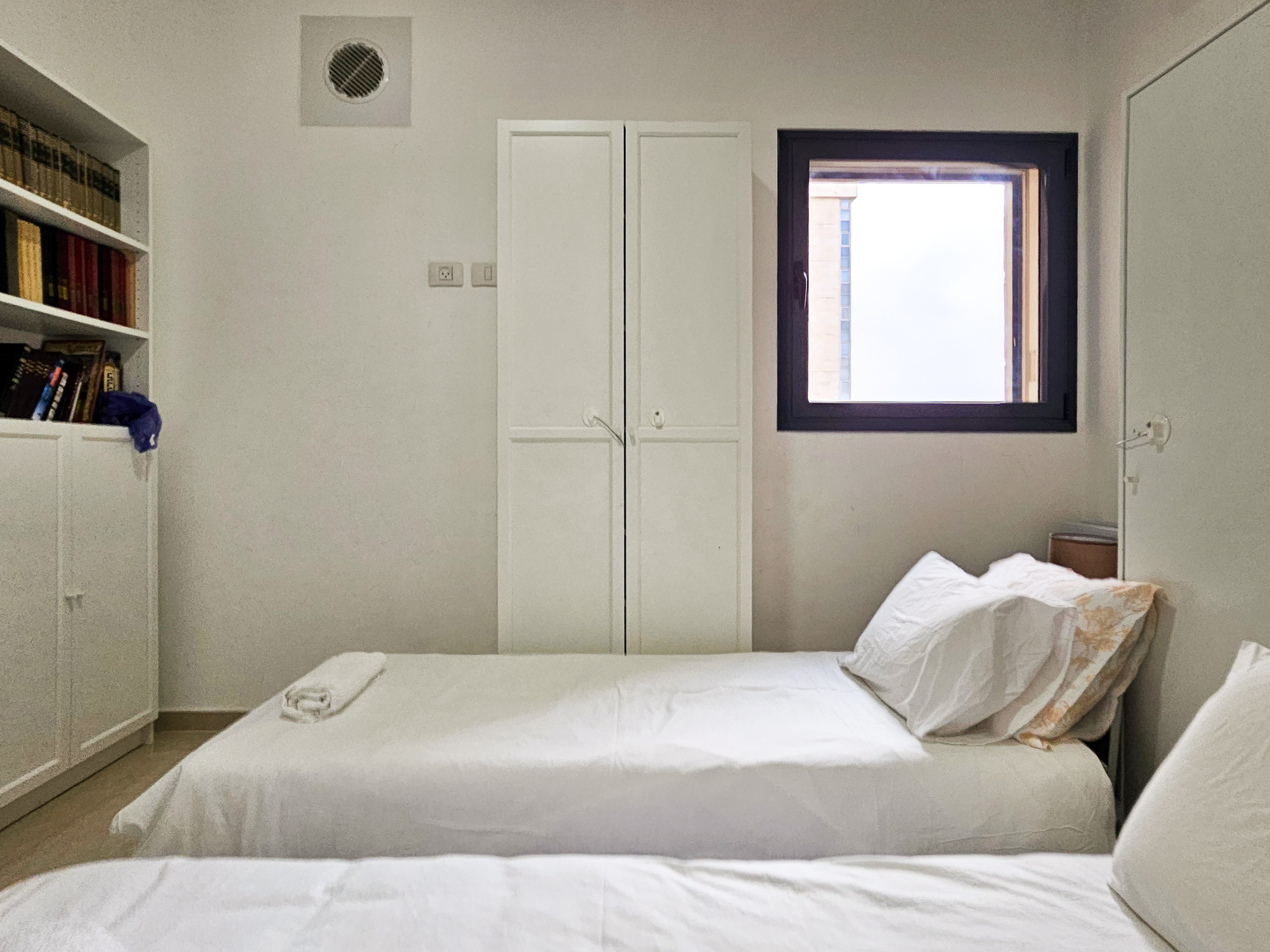 Bedroom 3: 2 foldable single beds which can be stored away to turn the room into an office. This is also the MAMAD (safe room) in case of emergency.