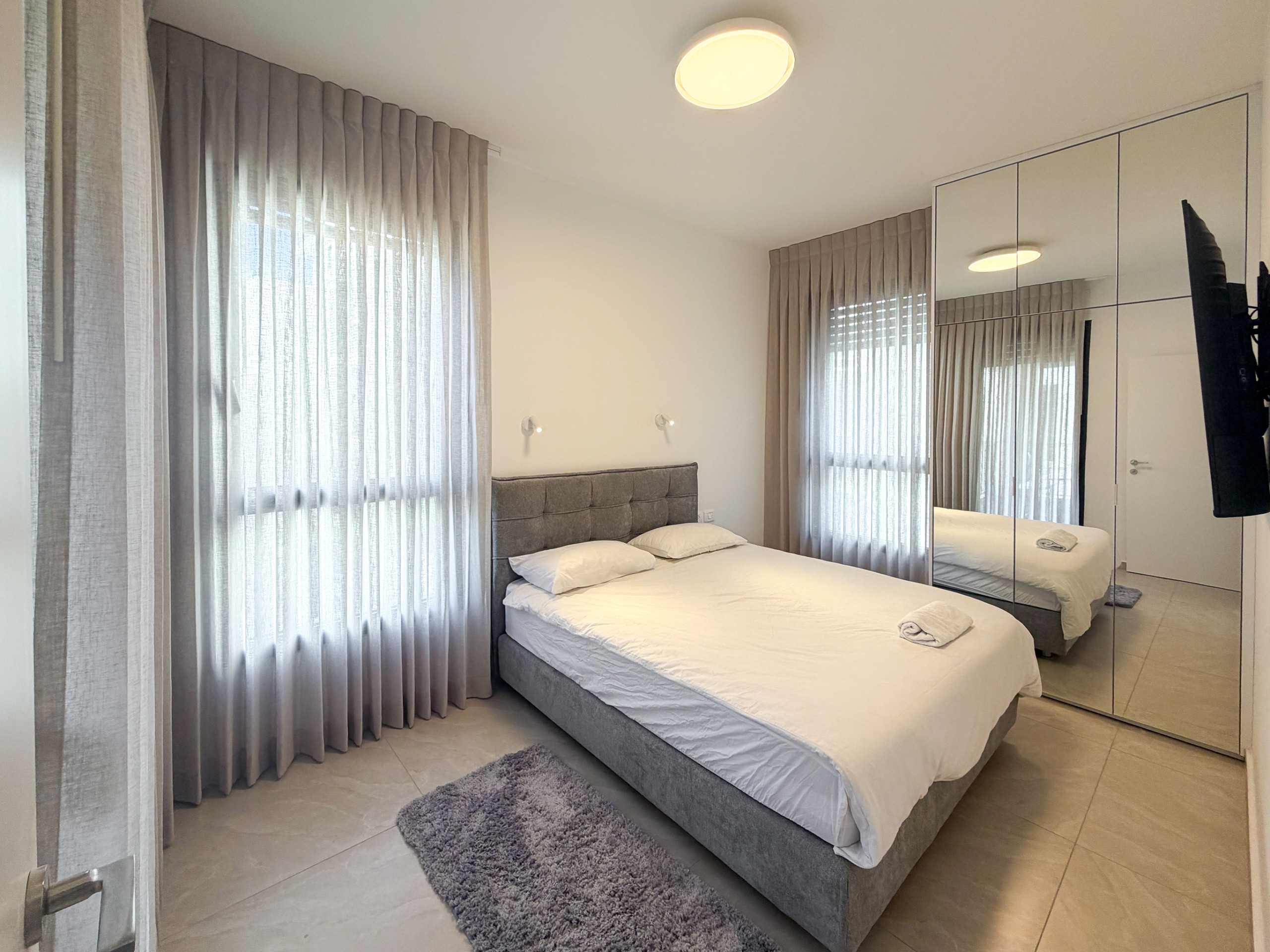 This one-of-a-kind apartment in Ramat Gan is perfect for a relaxing getaway or a family vacation. Located in a brand-new building in a new neighborhood, it sits right by the southern end of Hayarkon Park, offering easy access to Tel Aviv’s Old North through the park. Ayalon Highway is just a minute away, making it convenient to reach destinations across the country.