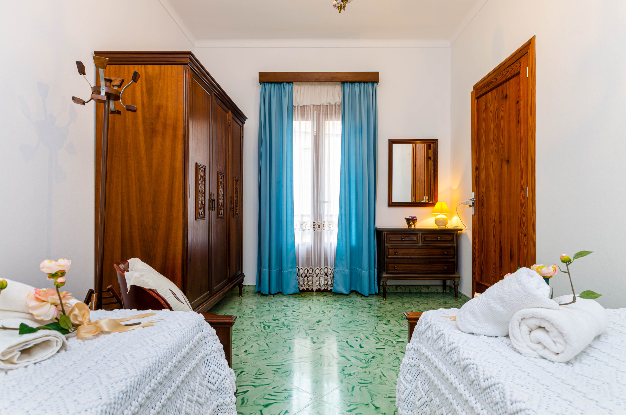The apartment features two bedrooms: one with a standard double bed (1.40 x 1.90 m) and another with two single beds, both equipped with a wardrobe and a fan for your comfort. The living room is bright and spacious, with a television and Wi-Fi—perfect for relaxing after a day at the beach or exploring the island.