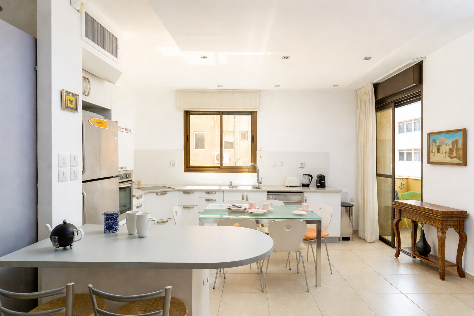 The apartment is located on a quiet street next to Bugrashov and Ben Yehuda street. It is just a few minutes walk from the beach. Dizengoff street in one direction and the famous Carmel market in the other are within walking distance as well. There is no shortage of eateries, shops, and cafes in the immediate vicinity and you'll be able fully enjoy the Tel Aviv life style with minimum planning.