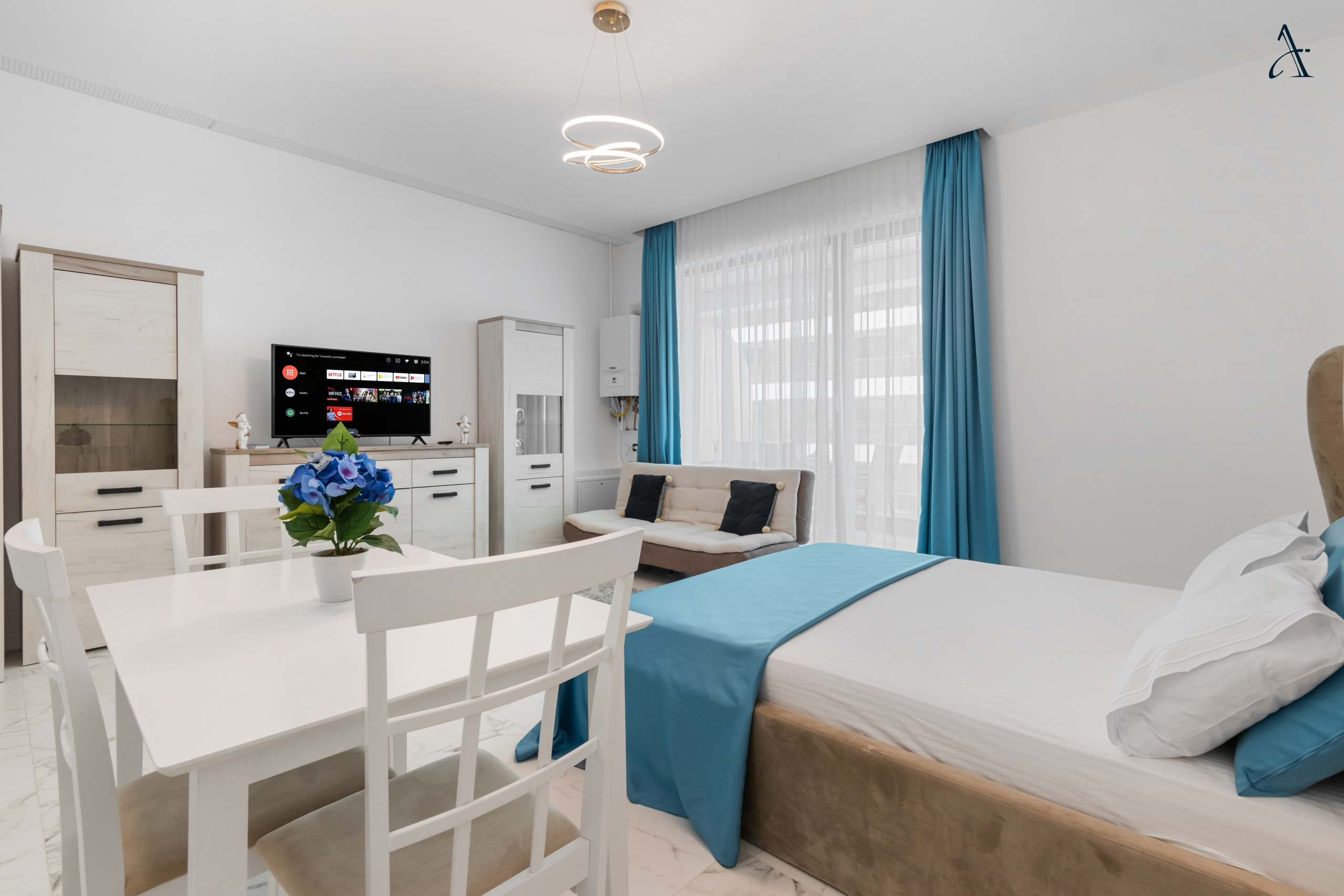 Discover a cozy and compact studio perfect for couples and business travelers in the vibrant Mamaia Nord area. This well-designed 1-bedroom unit offers a comfortable retreat with modern amenities and thoughtful features.
