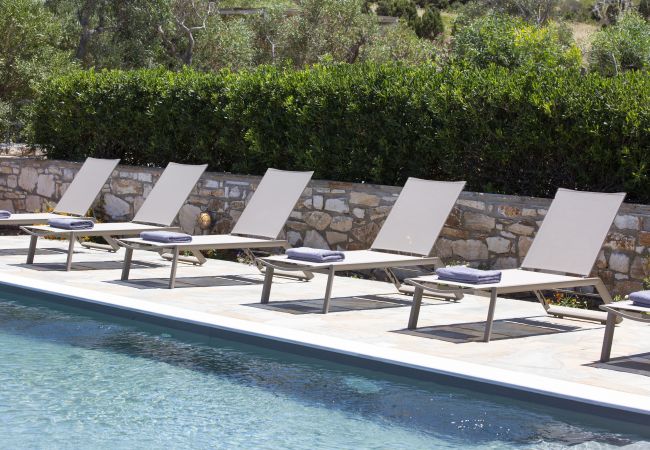 Anemos is the essential upmarket Paros pool villa. A beautiful family residence with stunning sea views and a large garden, it has many shaded areas outdoors for the whole party to wine and dine alfresco. Two gorgeous beaches are just a few steps away. Up to 8 guests can enjoy this private pool villa very comfortably.
