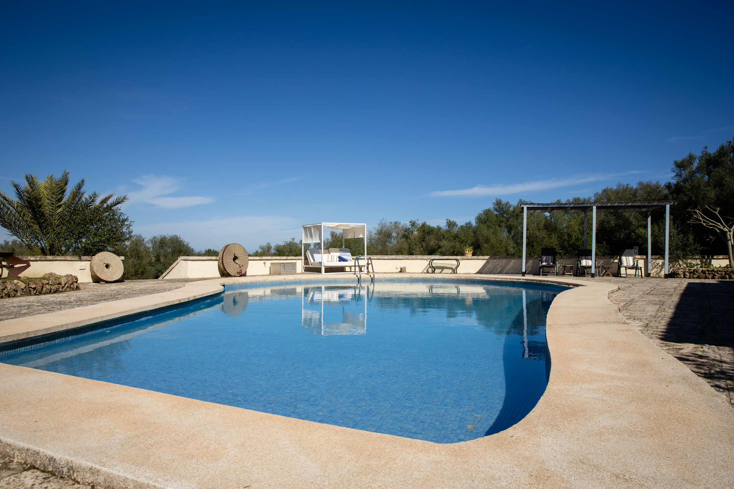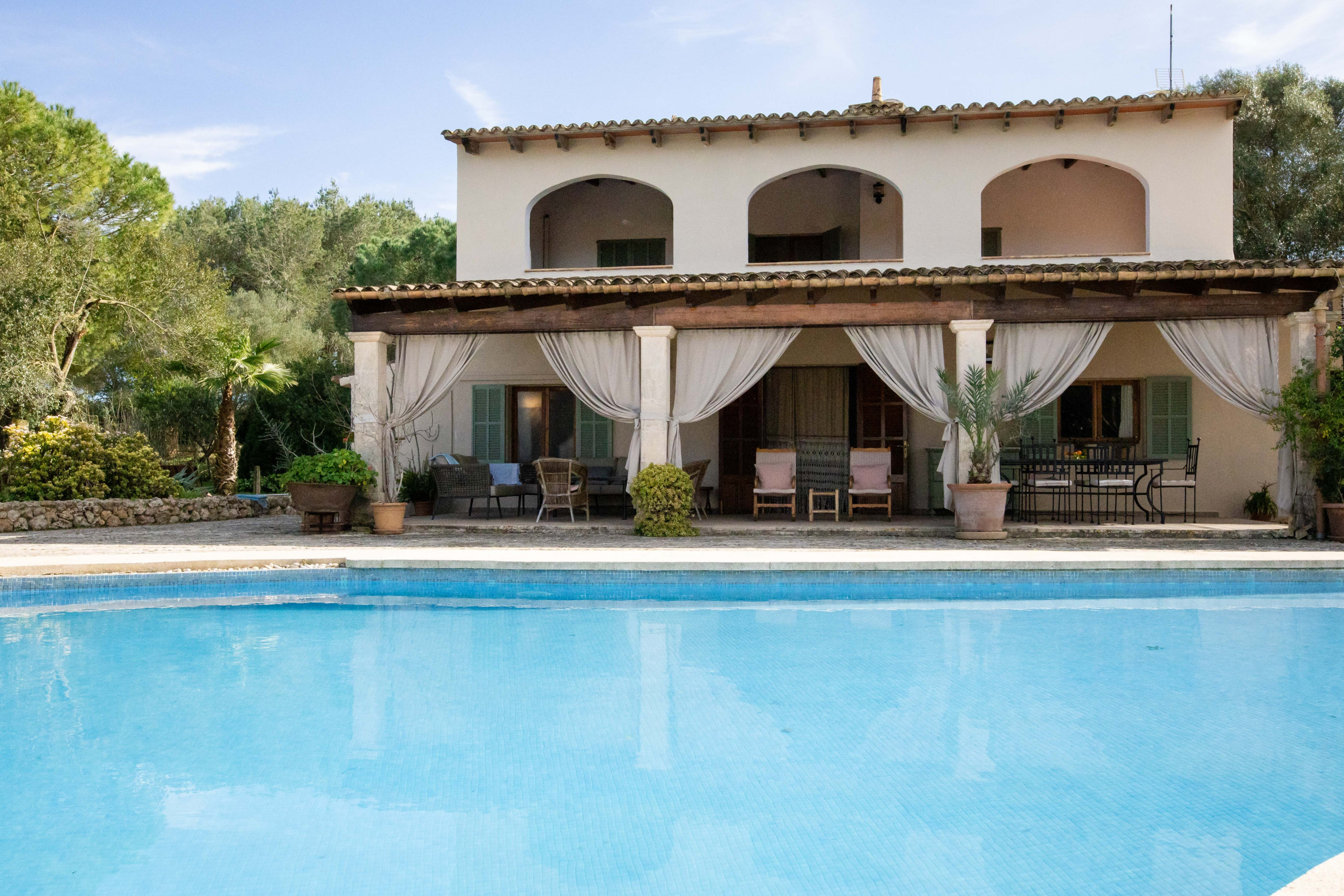 The villa in Ariany has 3 bedrooms and has capacity for 5 people. The villa is nice, is fully-equiped, and is 280 m². The property is located 0 m from the train station, 0 m from the international airport, 2 km from Ariany city, 2 km from Botiga Nova supermarket, 3 km from Restaurante-Celler Ca's Padri Toni from the restaurant, 15 km from Can Picafort sand beach, 42 km from Son Sant Joan airport. The house is situated in a family-friendly neighborhood in a beautiful rural area.The accommodation is equipped with the following items: garden, garden furniture, fenced garden, 500 m² terrace, washing machine, barbecue, iron, internet (Wi-Fi), hair dryer, central heating, open-air parking the same building, 1 TV, satellite tv (Languages: Spanish, English, German).In the gas independent kitchen, refrigerator, microwave, oven, freezer, dishwasher, dishes/cutlery, kitchen utensils, coffee machine, toaster and kettle are provided.