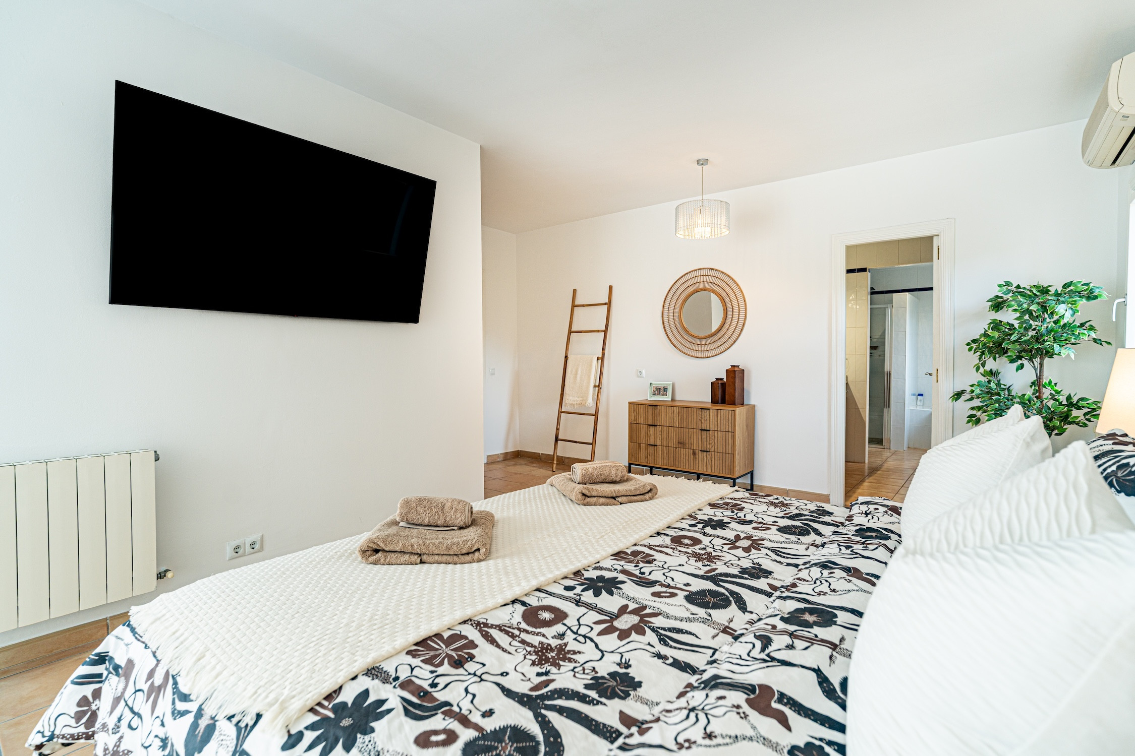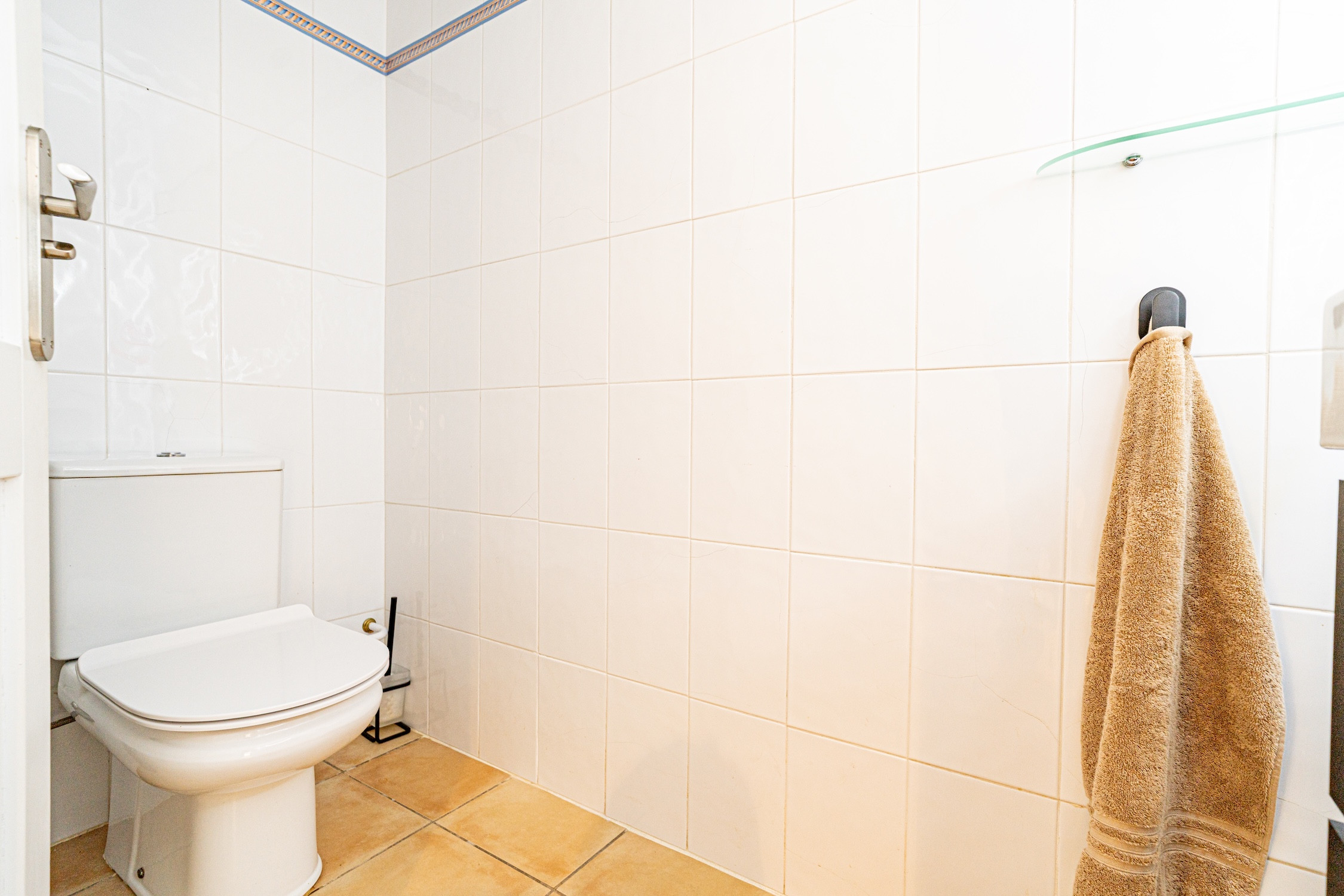 Outside, the house stands out for its large private garden with an artificial grass area (ideal for children), terrace, outdoor furniture and barbecue, shower and toilet, with the heated swimming pool being the main feature, perfect for enjoying at any time of the year. The land is fenced, providing security and privacy.
