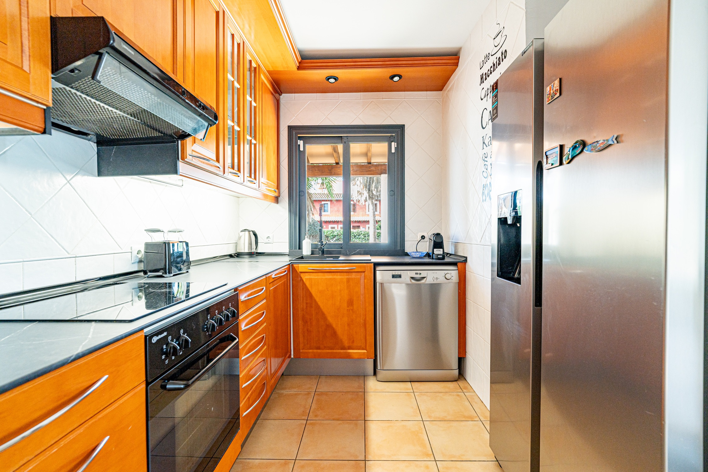 The fully equipped kitchen features a fridge, freezer, washing machine, oven, microwave, coffee makers (capsules, filter and Italian), toaster, kettle and juicer, perfect for enjoying family meals.