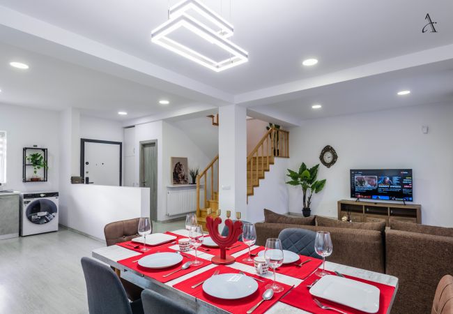 Experience your perfect group retreat at this elegant 3-bedroom villa in Otopeni, nestled within the upscale Otopeni City Gardens residential complex. Just minutes from Bucharest’s airport and main highway, you’ll enjoy both convenience and tranquility in one sophisticated setting.
