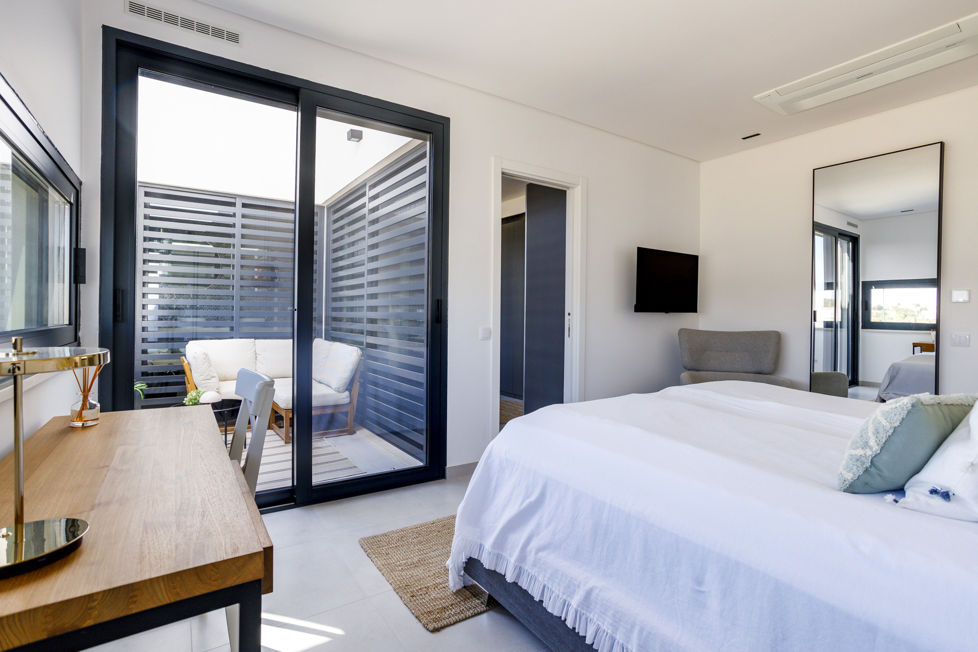 The villa features five spacious en-suite bedrooms, giving every guest their own private space. Bright interiors, clean architectural lines and high-quality finishes create a calm and elegant atmosphere throughout. Large indoor and outdoor living areas make it easy to enjoy time together, whether relaxing by the pool, dining on the terrace or unwinding after a day out in Tavira.