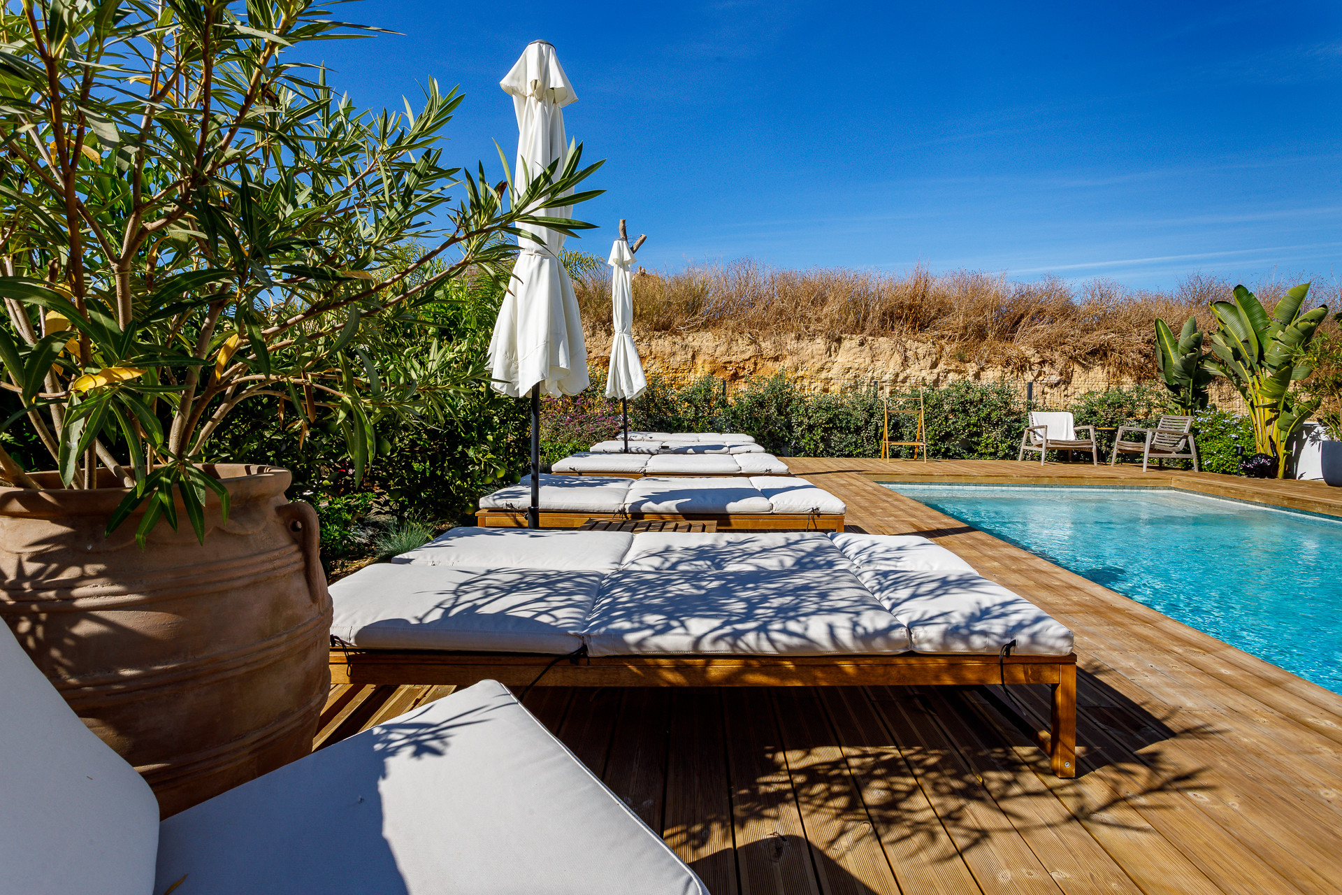 The location perfectly combines tranquillity with everyday convenience. A supermarket is just a five-minute walk away, while Tavira’s charming historic centre, with its restaurants, boutiques and boat connections to the beautiful Tavira Island beaches, can be reached within a pleasant ten-minute stroll. Thanks to this prime walkable location, guests can effortlessly enjoy Tavira without the need for a car. From golden beaches and fresh seafood to cobbled streets and authentic Algarve charm, everything that makes Tavira so special is right at your doorstep.